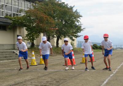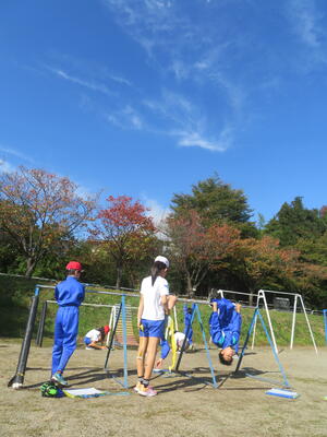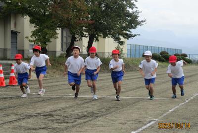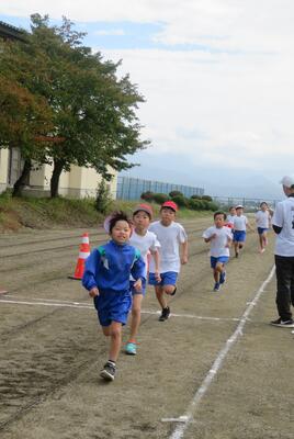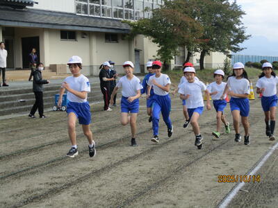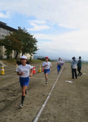グラウンドでは、持久走記録会に向け頑張る姿が見えます