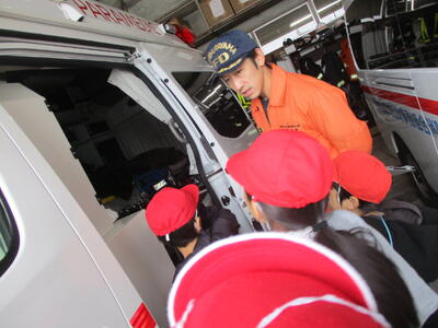 3年生は社会科の学習で、寒河江消防署を見学させていただきました。