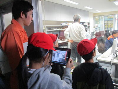 学校にもどった1、2年生は、おやつのポップコーン作り