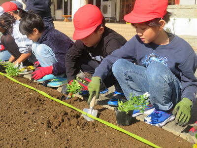 縦割り班での活動では、5、6年生がよく面倒を見てくれるので、作業もあっという間に終わります。