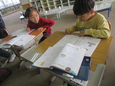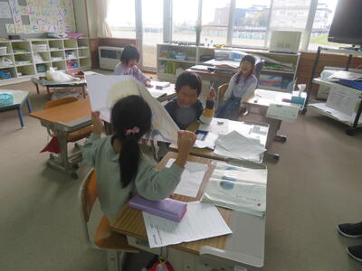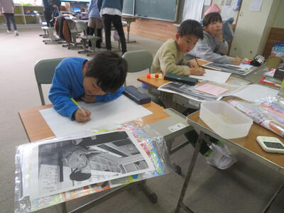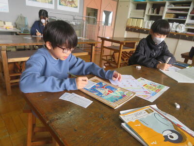 3、4年生の複式での国語の授業を他校からいらした先生に参観していただきました。