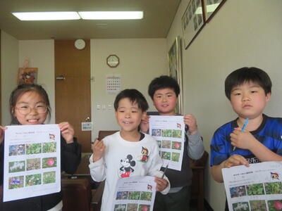 学校の周りの草花を見つけてきた3年生