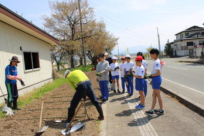 溝延小学校では同じ3年生に紅花の植え方について教える機会がありました