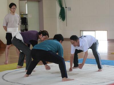 初めに、3人の保護者の方から、横綱土俵入りと弓取り式を見せていただきました。