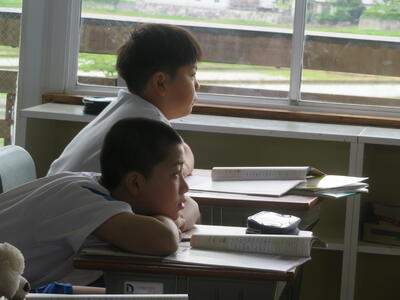 気温がぐんと上がり、学校の周りの緑も色が濃くなってきました。