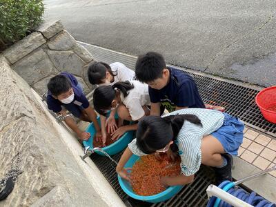 5・6年生が、紅餅をつくるための準備として