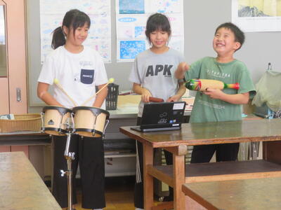3,4年生の音楽の授業を校内、校外の先生方から見ていただきました。