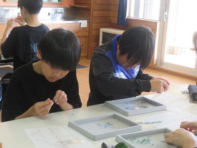 講師の逸見先生お招きし、今日はビーズ細工の日です。