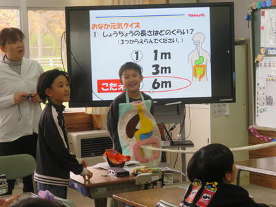 おなか元気に 投稿: 谷地西部小学校 (08:57) 3、4年生は、食育の学習で腸の働きについて学びました。 うんちは、健康のバロメーター よいうんちは、水に浮くんだって。 腸の長さは6メートル! 教材を見ながら、みんなびっくりの表情。 生活を支えるのは、やっぱり規則正しい生活。 人生100年時代だからこそ、小さいうちから健康な体づくりを意識していきたいものです。 Tweet -