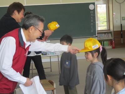 ライオンズクラブの方から、黄色い帽子をいただきました