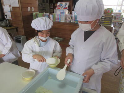 縦割り班で盛り付けもします